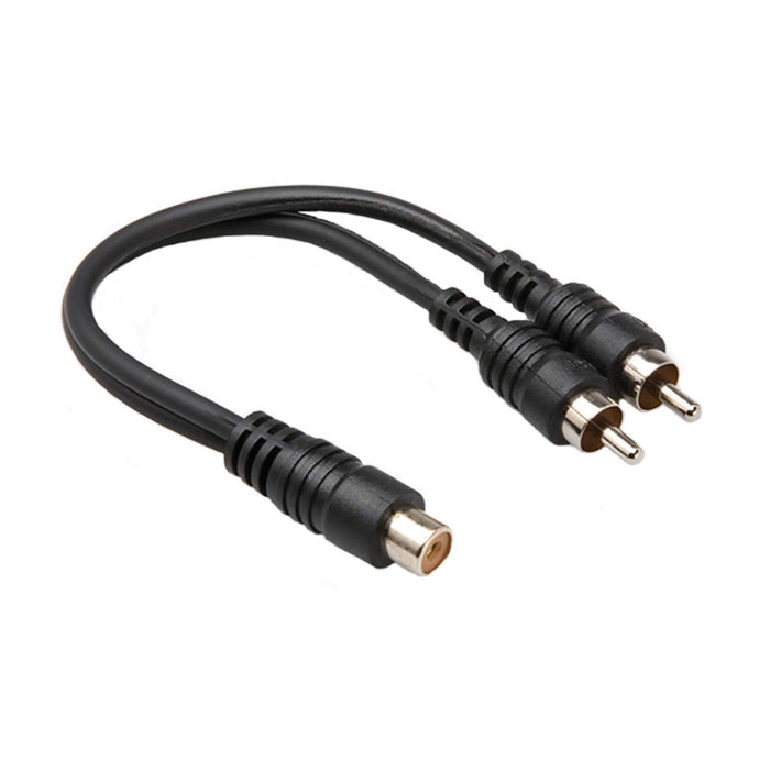 This Hosa RCA Female to 2 RCA Male Y-Cable can be used to split an RCA female signal to two RCA male plugs or combine two signals to one female RCA connector.
