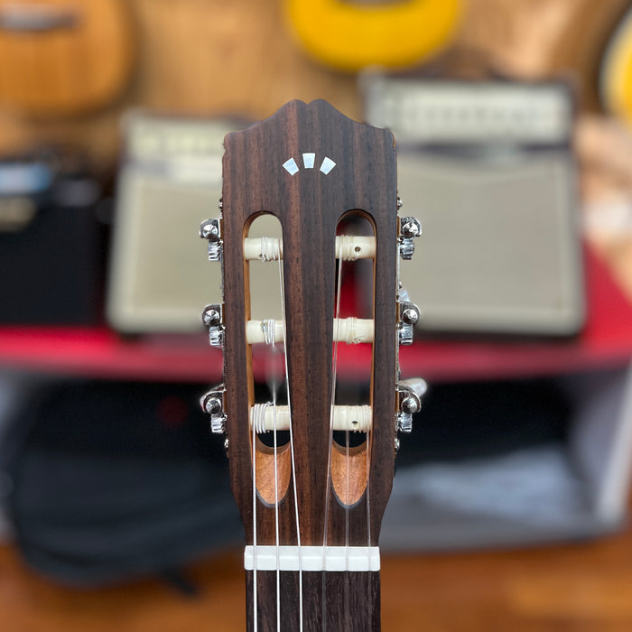 The Cordoba C3M combines time-honored construction techniques with modern refinements. Its solid cedar top produces a warm, responsive tone that improves with age, while the mahogany back and sides provide excellent projection and balance. The Spanish fan bracing enhances the guitar's traditional classical voice, perfect for both intimate performances and ensemble playing.