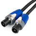Hand-soldered connectors, 2-conductor, 16-gauge, low-impedance black cable with a copper spiral shield. Available in a range of lengths. Limited lifetime warranty is offered by Rapco. RapcoHorizon H series 16GA speaker cable uses bare copper stranded, twisted pair conductors – each individually jacketed with an overall round jacket added for durability. This commercial grade speaker cable is flexible and will stand the test of time. Neutrik speakOn connectors on both ends.