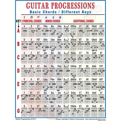 Walrus Productions8" x 11", notebook-sized reference chart Includes common chord shapes and major/minor chord progressions A great addition to any study, studio, or...