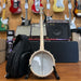 This banjo has been professionally inspected and set up in our shop, and it includes a padded gig bag for easy transport. It shows light cosmetic wear from normal use but is in solid playing condition.