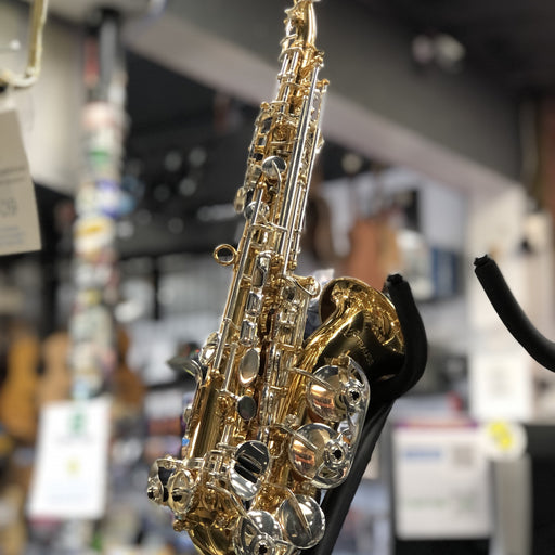 At Dirt Cheep we take great pride in offering discount prices on new and used saxophones, including a rotating selection of alto saxophones, tenor saxophones, and the occasional soprano or baritone saxophone. We support and service everything we sell, and all of our pre-owned saxophones are inspected, adjusted, and sanitized: we guarantee your satisfaction. All saxes come complete with a case, and all new instruments include a mouthpiece and ligature. Our prices are less than renting - come see us today!