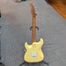A Strat-style solidbody electric with professional features, a roasted maple neck, and a standout vintage yellow finish — all at a price that won’t break the bank.