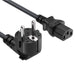 Be prepared so you can plug in your device when you visit Europe. One end of this international power cord (IEC-320-C13) works with most PCs, monitors, scanners, printers and other devices that use the 3-pin shroud power connector while the other end features a 2-prong Schuko European CEE 7/7 plug. The female connector plugs directly into device, while the male connector plugs into the standard European outlet.