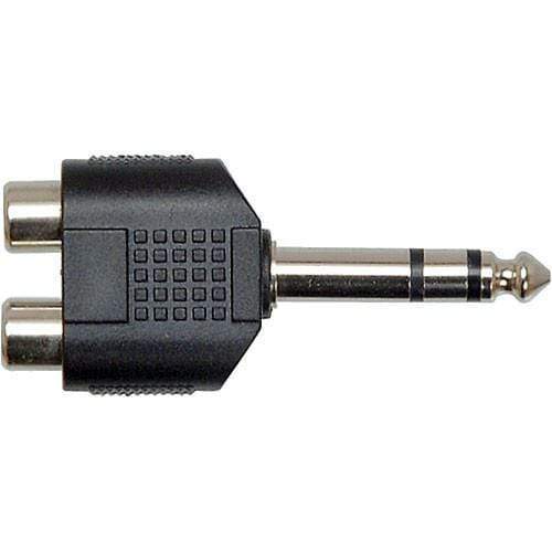 The Hosa GPR-484 Splitter/Combiner Adapter features two RCA female connections and a single TRS 1/4" phone male connection. The adapter may be used to combine incoming stereo signal into a single 1/4" phone input, or split an outgoing signal into two RCA connections.