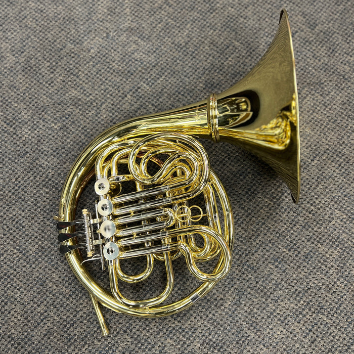 Take your playing to the next level with the Strauss 6400 Series Double French Horn, crafted for advancing students and serious musicians alike. This elegant horn delivers a rich, full-bodied tone with smooth playability and precise intonation, making it ideal for orchestral, band, or solo performances. The classic lacquer finish not only looks beautiful but also protects the instrument for years of reliable use.
